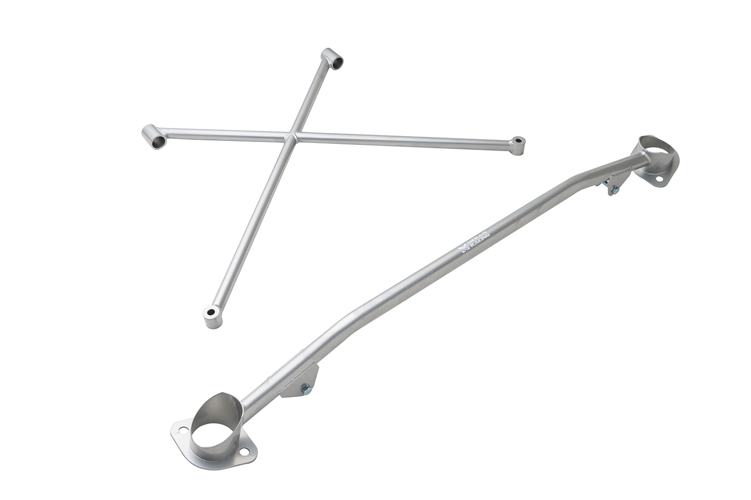 One-Piece Race Spec Strut Tower Bar constructed of strong Aluminum to extremely tight tolerances and then polished to perfection. In addition to the main strut tower bar, an additional X-brace that bolts onto main strut tower bar and integrates the upper mounts of the suspension to the lower cross member to increase rigidity, reduce chassis flex under cornering forces for better handling performance.